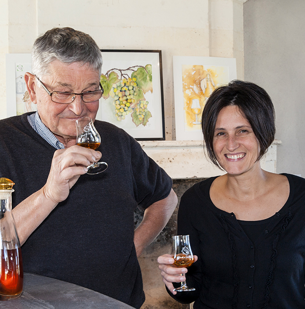 En 2007, Gérard et Cécile se lancent dans la vente directe. Huit ans plus tard c’est une large gamme de produits qui est proposée à la vente au sein même de l’exploitation : Cognacs, Vins, Pineaux et Jus de raisin.